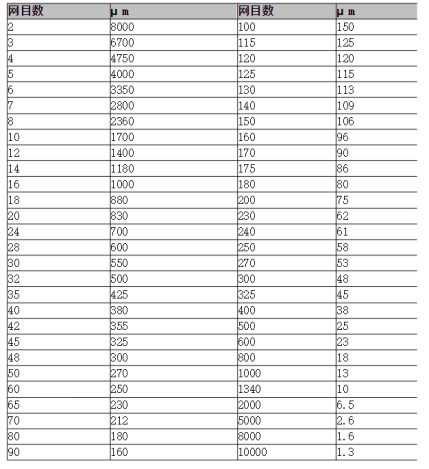 濾袋的孔徑和目數是可以相互轉換的,不同的孔徑對應的目數也不相同。孔徑的單位一般使用微米表示的,目數的單位則是個。不清楚孔徑與目數轉換關系的伙伴可以保存下面這張明細表。