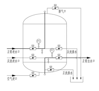 多介質過濾器根據產水要求工藝設計有簡單,也可復雜,不同的設計工藝具有不同的設計環節。